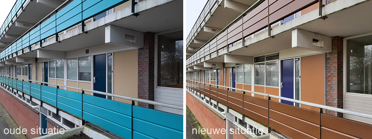 In deze wijk staan verder deels traditionele laagbouw en lage flats met rustige kleuren. Ook om die reden is het mooier dat de 3 grote flats nu meer rustige kleuren hebben. Door deze wijzigingen passen de flats mooier in de hele wijk.